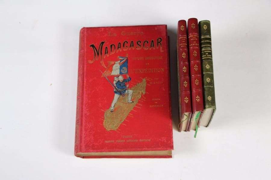 Lot de livres reliés sur la guerre de 1870-1871. On joint L'expédition de Madagascar par Galli | Au drapeau par Maurice Loir | Autour du drapeau par le général Thoumas | Notes sur l'exposition militaire de 1889.