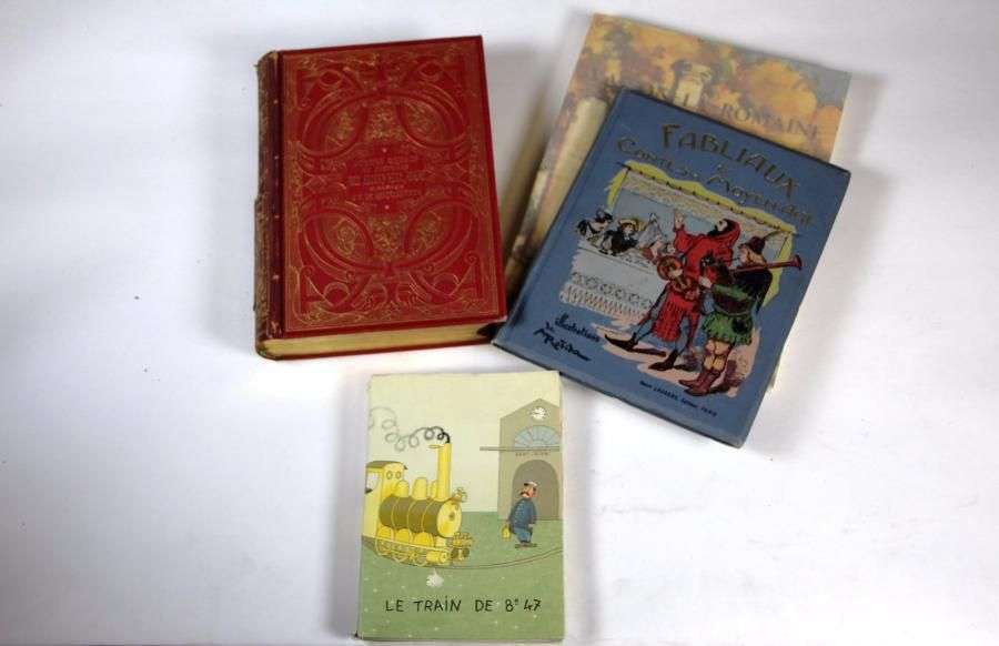 Lot de 7 livres : « Atlas Migeon » (accidents) | « Croquis de cavalerie » Vallet | « Fabliaux et contes du Moyen Âge » | 3 tomes de Paul Lacroix, édition Firmin Didot (accident) | « Vaison la Romaine » de Sautel, exemplaire numéroté.