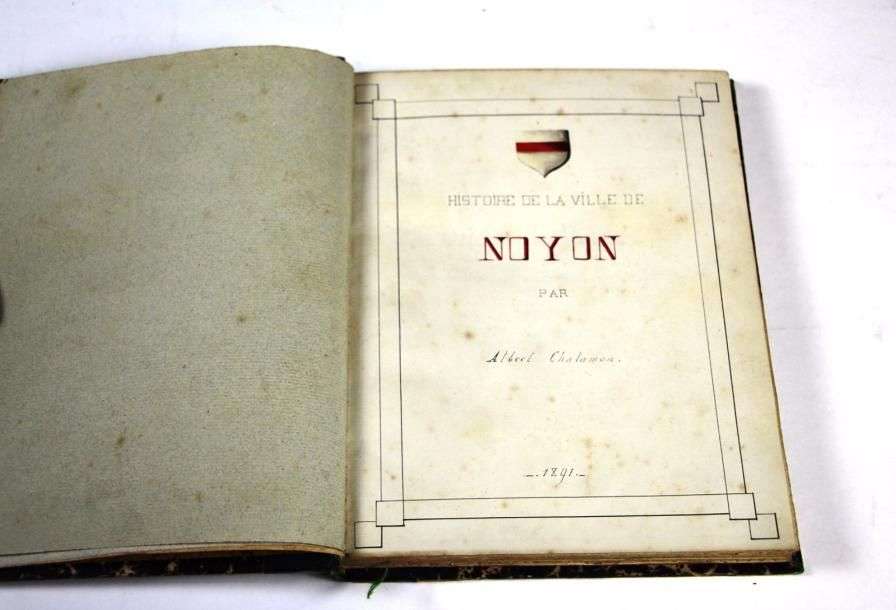Chalamon Albert Histoire de la ville de Noyon, 1891. Livre de 100 pages, entièrement manuscrit, illustré d'aquarelles et de photographies.