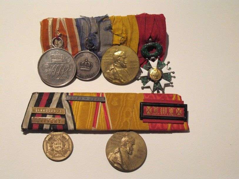 Allemagne Lot de 2 barrettes de 1914-1918, 8 rubans, 6 décorations dont une Légion d'honneur. Argent, bronze doré.