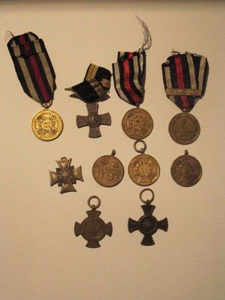 Allemagne Lot de 10 décorations de 1870. 4 rubans, 6 SR.