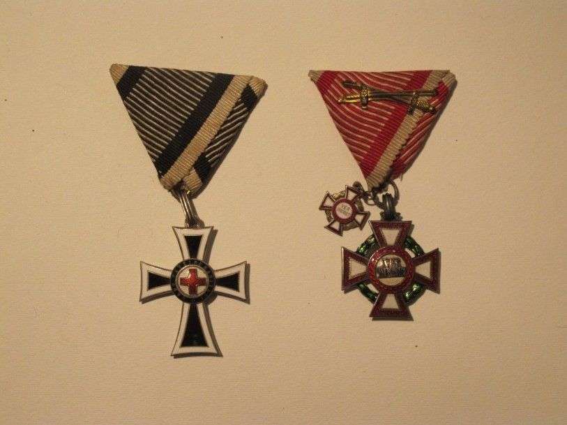 Autriche Lot de 2 décorations de 1870, et une miniature. argent, émail, rubans. TB
