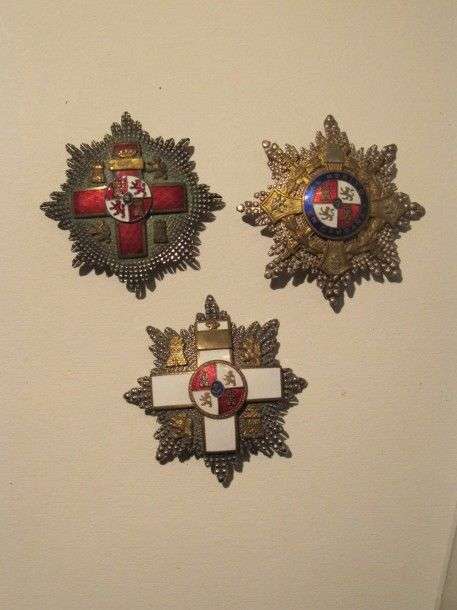 Espagne Ordre du Mérite militaire. Lot de 3 plaques. Métal argenté, émail.