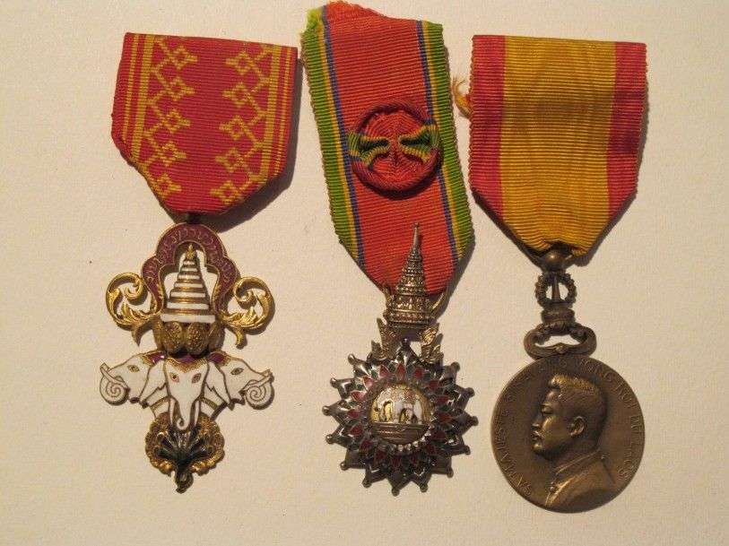 Laos Ordre de L'Éléphant blanc. Lot de 3 décorations, rubans.