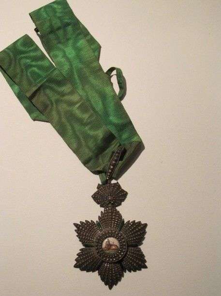 Perse Ordre du Lion et du Soleil. Étoile de Commandeur. Argent, émail (légers éclats), cravate.