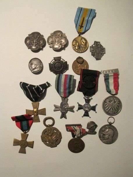 Pologne Lot de 16 décorations, 7 rubans.