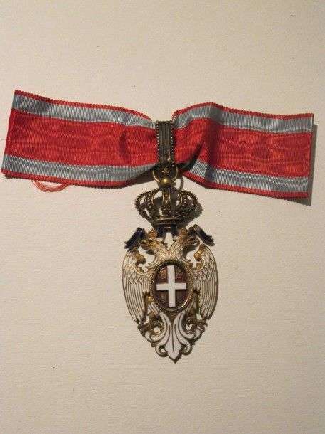 Serbie Ordre de l'Aigle blanc. Insigne de Commandeur. Vermeil, émail (éclats), cravate.