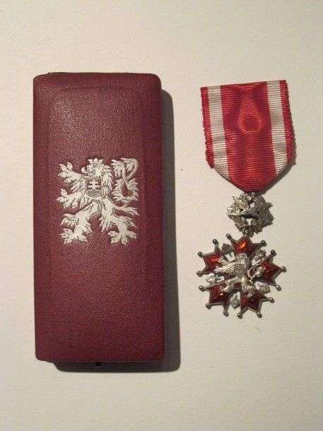 Tchécoslovaquie Ordre du Lion. Étoile de Chevalier. Argent, émail, ruban, écrin. TTB