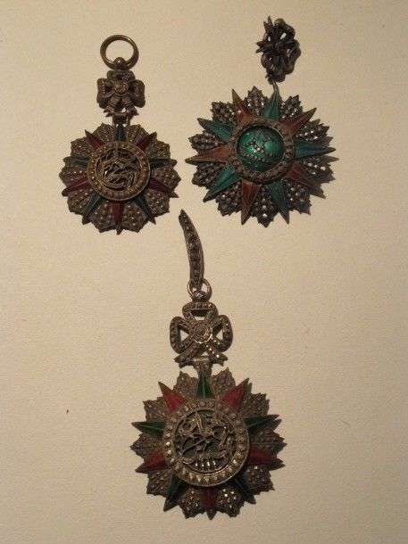 Tunisie Ordre du Nicham Iftikar. Lot de 3 étoiles de Commandeur. Argent, é