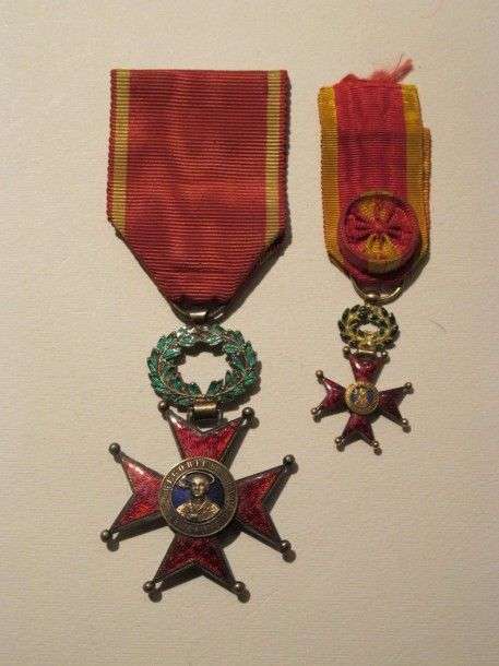 Vatican Ordre de Saint Grégoire le grand. Lot de 2 croix : Chevalier, Officier en miniature. Rubans. (éclats)