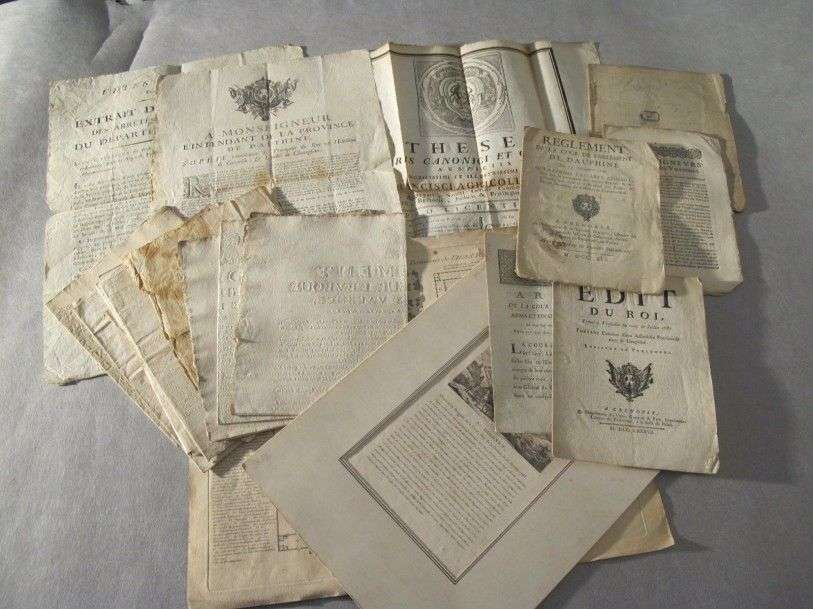 XVIIIè siècle Ensemble de 20 (env.) documents imprimés, affiches, arrêts, règlements, édit, ordonnance principalement sur le Dauphiné et divers. (certaines avec manques)