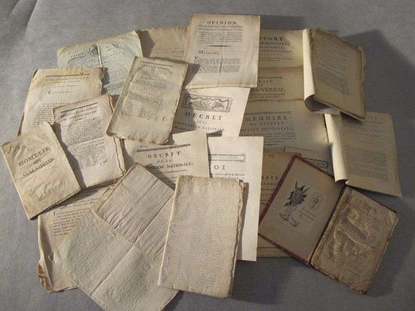 Révolution Ensemble de 28 (env.) documents imprimés, affiche, décrets, lois, états généraux, code de la justice de paix…
