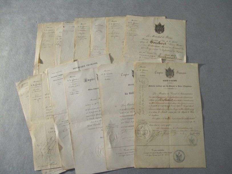 Second Empire Dossier de 16 (env.) documents, concernant le Major Foubert, du 91è de Ligne, dont nominations et diplômes (Italie, Crimée et Légion d'honneur).