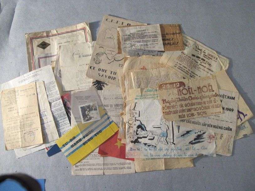 Guerre d'Indochine Collection de 65 (env.) tracts pour l'Indépendance du Vietnam, 12 documents sur le CEFEO dont citations et une photo privée de Hô Chi Minh (1951).