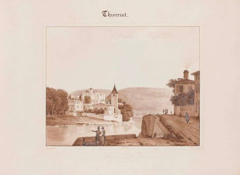 Annoté sur le montage en bas Auguste 1828 Thierriat 17,7 x 23 cm
