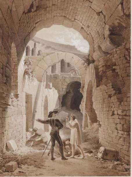 Voyageurs dépouillés dans une galerie de l'amphithéâtre de Nîmes