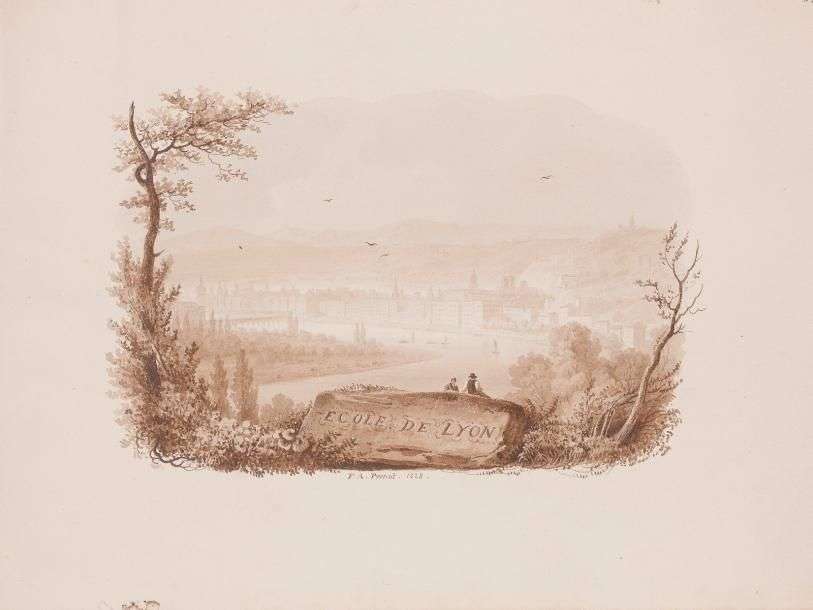 Présentation de l'Ecole de Lyon avec vue de Lyon, la Saône, et le Pont Morland