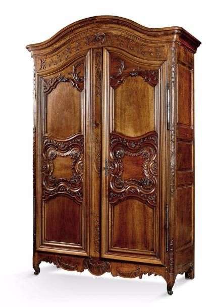 Armoire en noyer mouluré et sculpté à décor de réserves et coquilles, ouvr