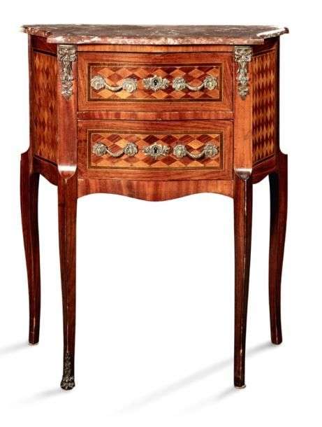 Ouvrant à deux tiroirs sur deux rangs. Marbre brèche.