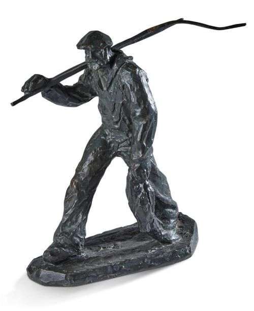 Bronze à patine verte, signé sur la base et marqué du cachet de fondeur.