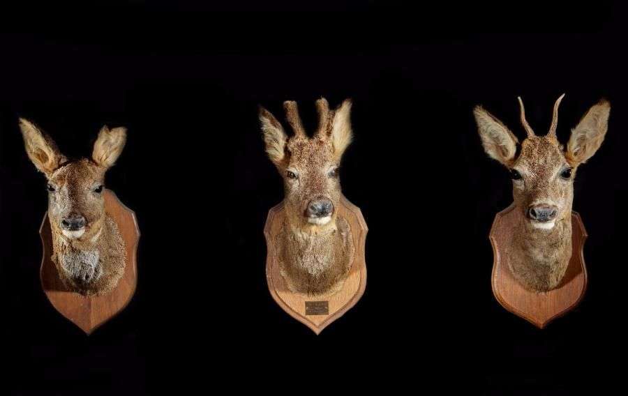 Chevreuil d'Europe (Capreolus capreolus) (CH): 3 têtes naturalisées montée