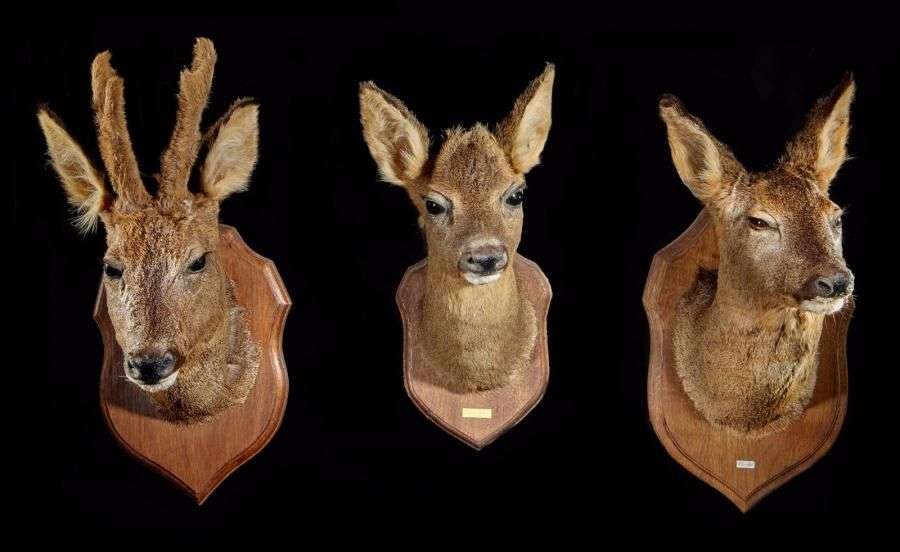 Chevreuil d'Europe (Capreolus capreolus) (CH): 3 têtes naturalisées montée