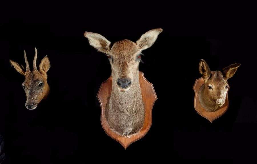 Un ensemble comprenant 3 têtes naturalisées dont: