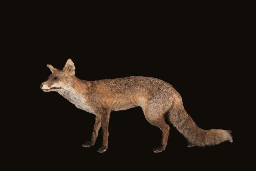 Renard roux (Vulpes vulpes) (CH): spécimen naturalisé sur socle sablé