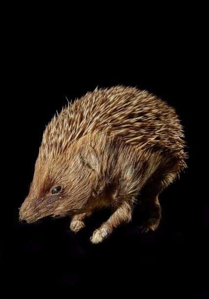 Hérisson d'Europe (Erinaceus europaeus) (CE): spécimen juvénile naturalisé sans socle avec pattes abîmées
