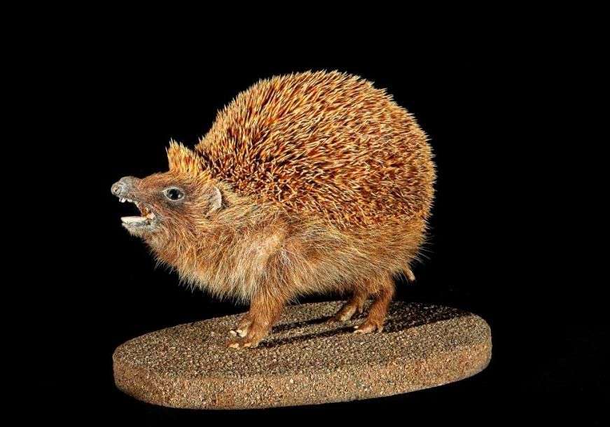 Hérisson d'Europe (Erinaceus europaeus) (CE): spécimen naturalisé sur socl