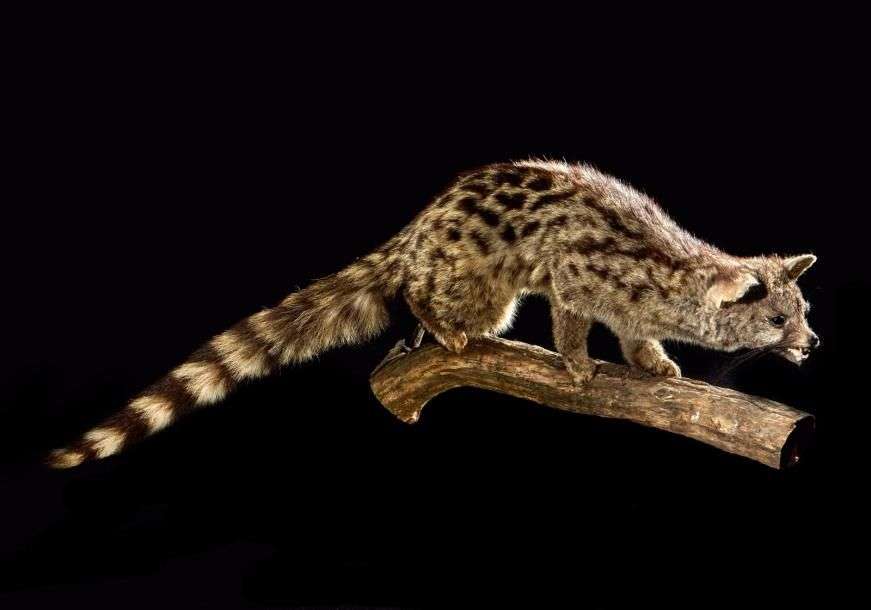Genette d'Europe (Genetta genetta) (CE): spécimen ancien naturalisé gueule