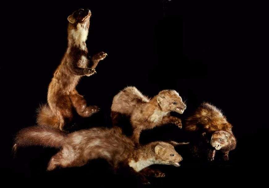 Un ensemble de 4 spécimens anciens de Mustélidés naturalisés sans socle do