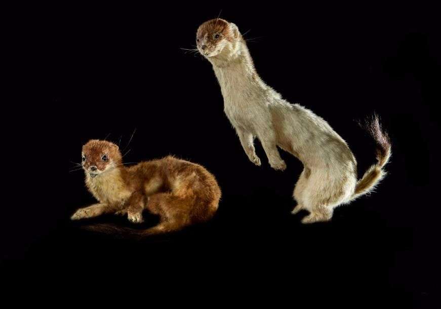 Un ensemble de 2 spécimens d'Hermine (Mustela erminea) (CH) naturalisés sa