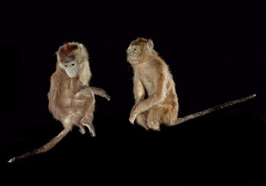 Un ensemble de 2 spécimens anciens de primates naturalisés avec et sans so