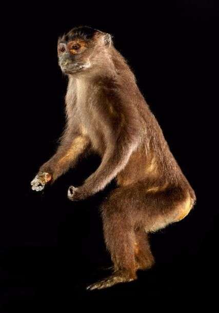 Primate spp (II/B): spécimen ancien naturalisé en station bipède sur socle