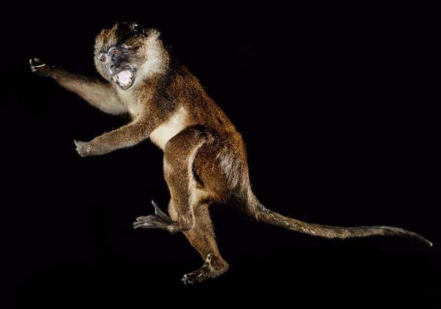 Primate spp (II/B): spécimen ancien naturalisé en station bipède gueule ou