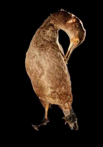Grand cormoran (Phalacrocorax carbo) (CE): spécimen naturalisé sans socle en attitude de nettoyage