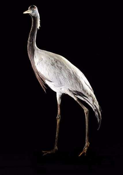 Demoiselle de Numidie (Anthropoides virgo) (II/B): spécimen ancien naturalisé sur socle provisoire, idéal décoration