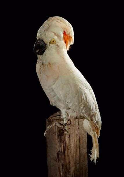 Cacatoès à huppe rouge (Cacatua moluccensis) (I/A): spécimen naturalisé sa