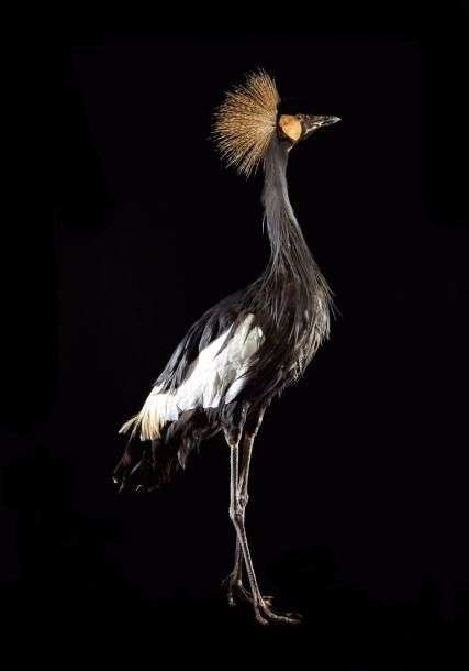 Grue couronnée (Balearica pavonina) (II/B): spécimen naturalisé sur socle
