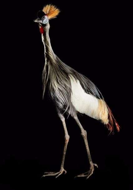 Grue couronnée (Balearica pavonina) (II/B): spécimen naturalisé sur socle,