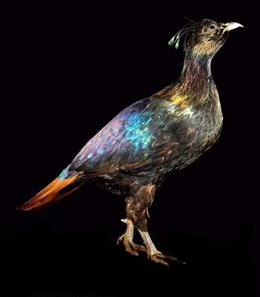 Lophophore resplendissant (Lophophorus impejanus) (I/A): spécimen avec magnifiques reflets métalliques naturalisé sur socle provisoire