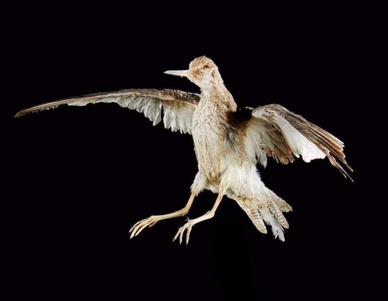 Chevalier gambette (Tringa totanus) (CE): spécimen naturalisé en vol sur socle provisoire