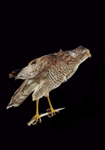 Epervier d'europe (Accipiter nisus) (II/A-CE): spécimen naturalisé sur bra