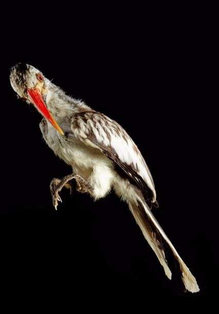 Calao à bec rouge (Tockus erythrorhynchus) (NR): beau spécimen ancien naturalisé sans socle, idéal décoration