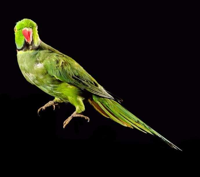 Perruche à collier (Psittacula krameri) (II/B): spécimen naturalisé sans s