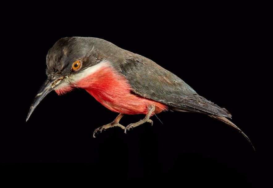 Guêpier gris-rose (Merops malimbicus) (NR): spécimen naturalisé sur socle provisoire