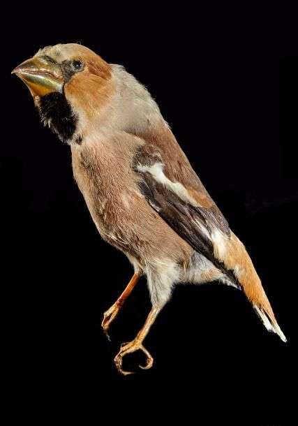 Gros-bec d'Europe (Coccothraustes coccothraustes) (CE): spécimen ancien naturalisé sans socle
