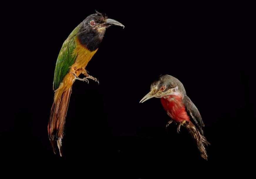 Un ensemble de 2 spécimens de Guêpier naturalisés sur socle provisoire: