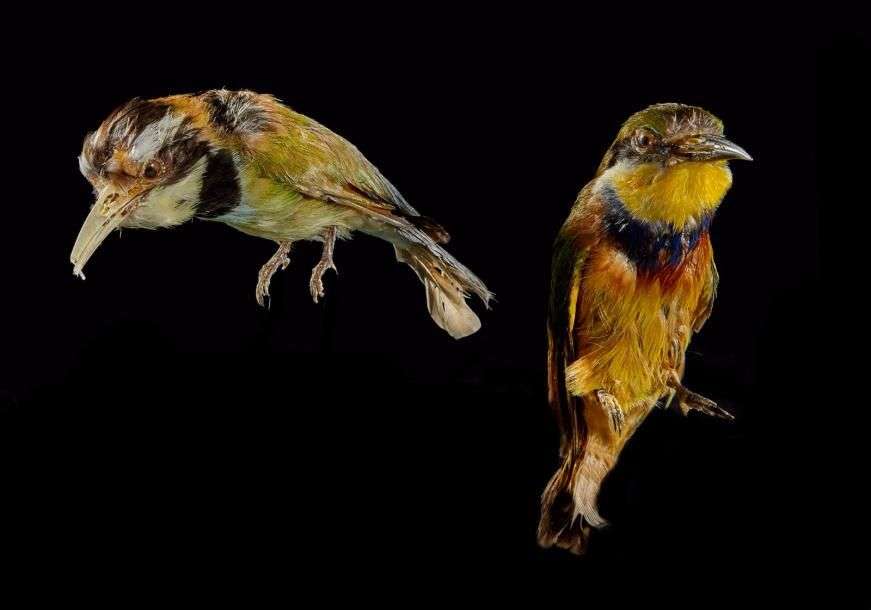 Un ensemble de 2 spécimens anciens de Guêpiers naturalisés sur socle provi